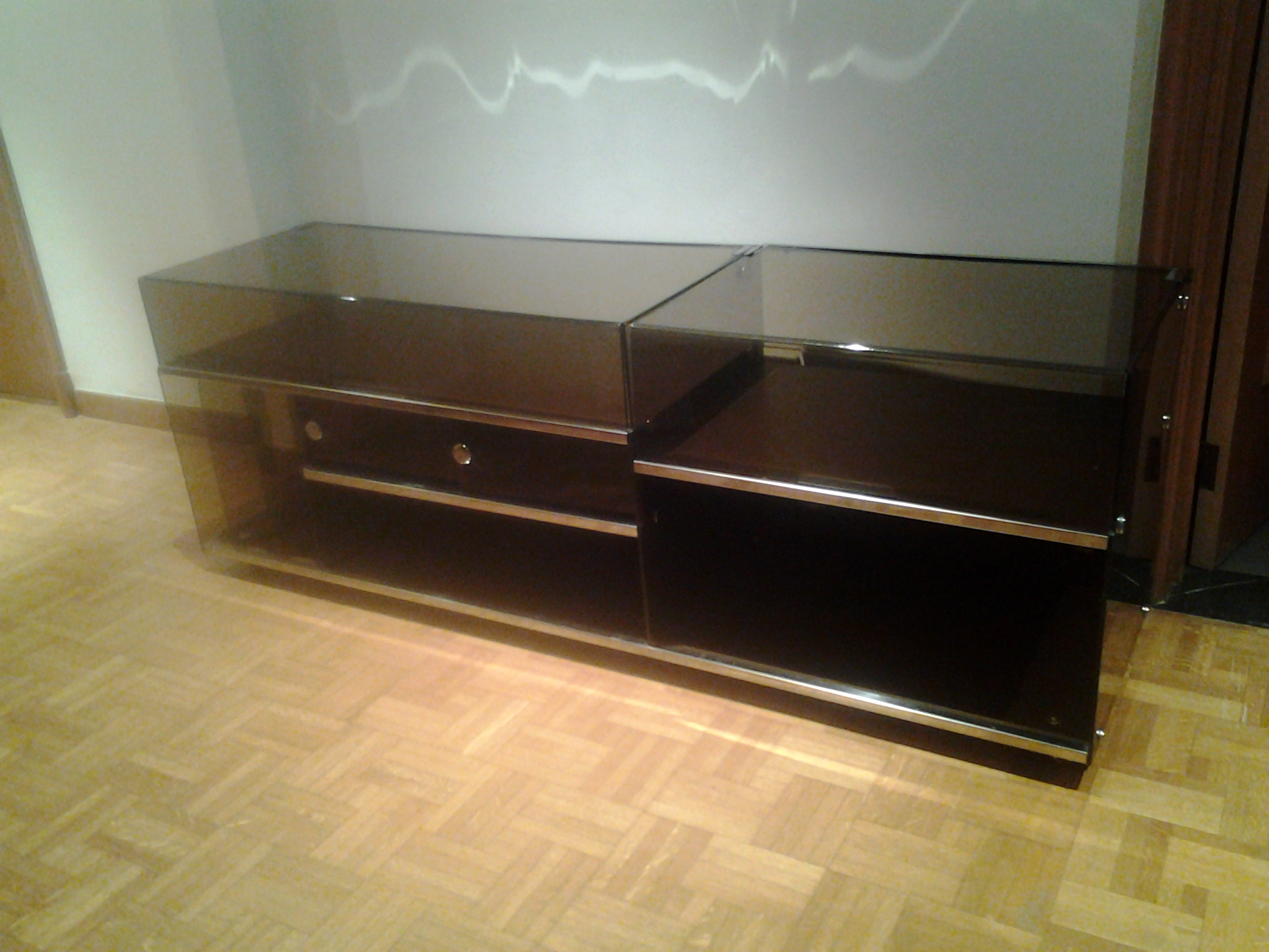 Plexiglas Stereo / TV kast jaren DESIGN jaren 70 Vintage Stereo kast Donkerbruin en overal egaal…foto is lichter dan werkelijkheid!